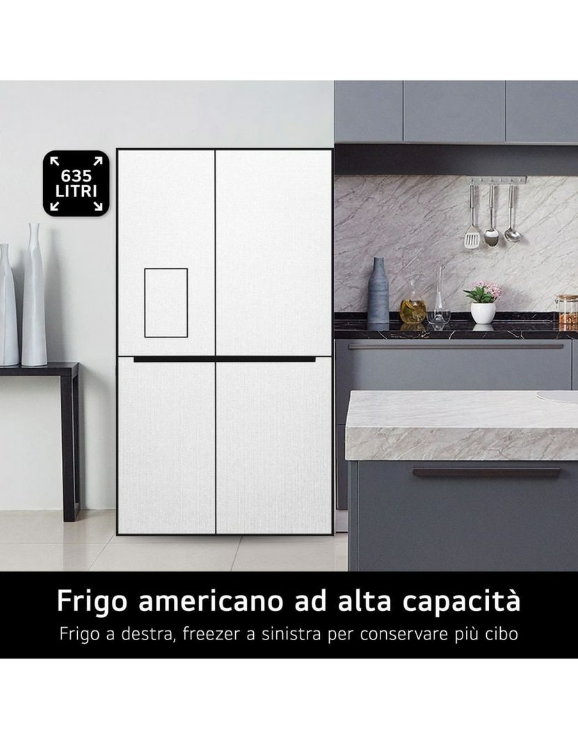 Frigorifero side by side - Libera installazione (FS) - Capacità n etta 635 Lt - Classe energetica E - Antibrina/no frost - Con sist ema Multi Flow - Con vetro InstaView Connettività Wi-Fi con app L