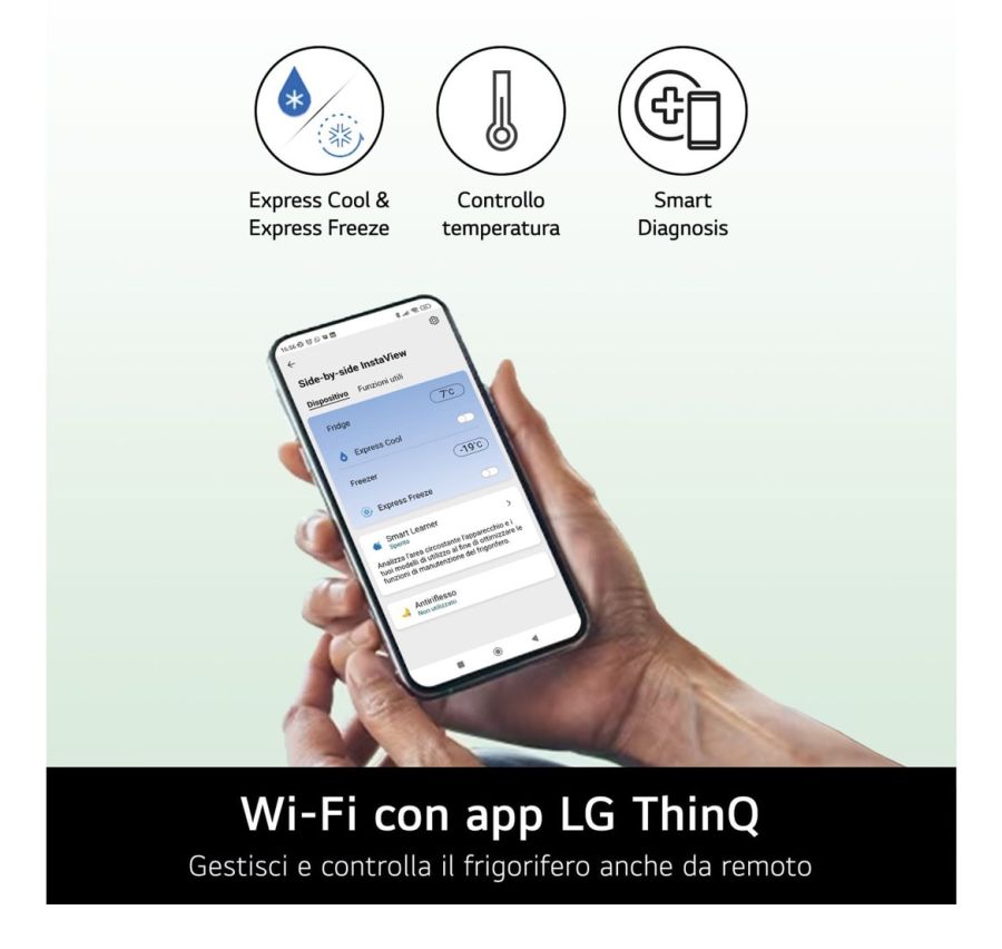 Ti piacerebbe un frigorifero che puoi monitorare e controllare direttamente dal tuo smartphone? L'hai appena trovato! Con l'app LG ThinQ? puoi accedere a tante funzioni smart che ti facilitano la vita.