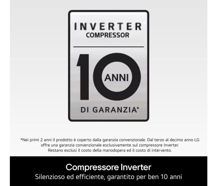 Il compressore Inverter? regola la potenza di raffreddamento, riducendo consumi e rumore. Garanzia 10 anni.