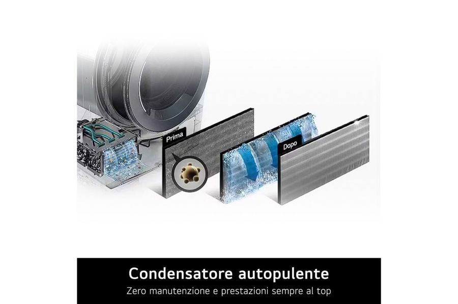 Addio pulizia manuale del condensatore! Il sistema di pulizia automatica sfrutta dei getti di acqua a pressione per pulire il condensatore: così le prestazioni di asciugatura saranno sempre al top e tu avrai meno pensieri.