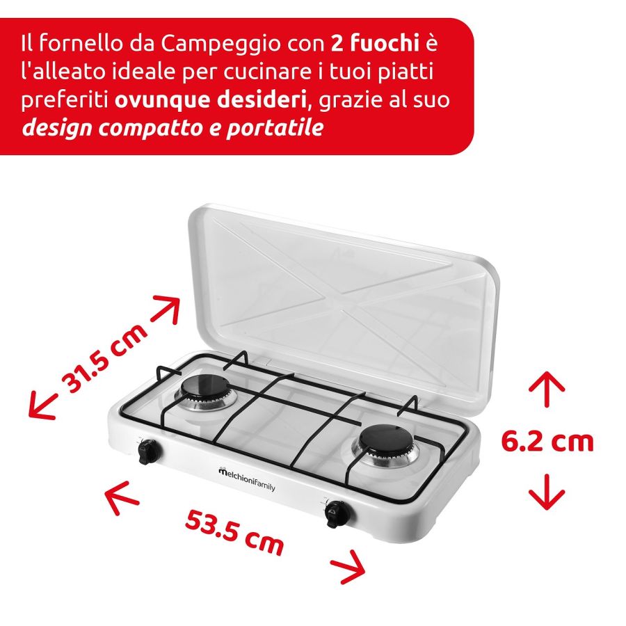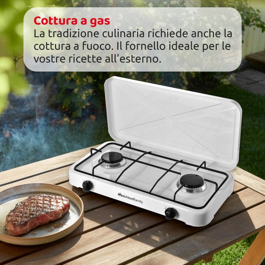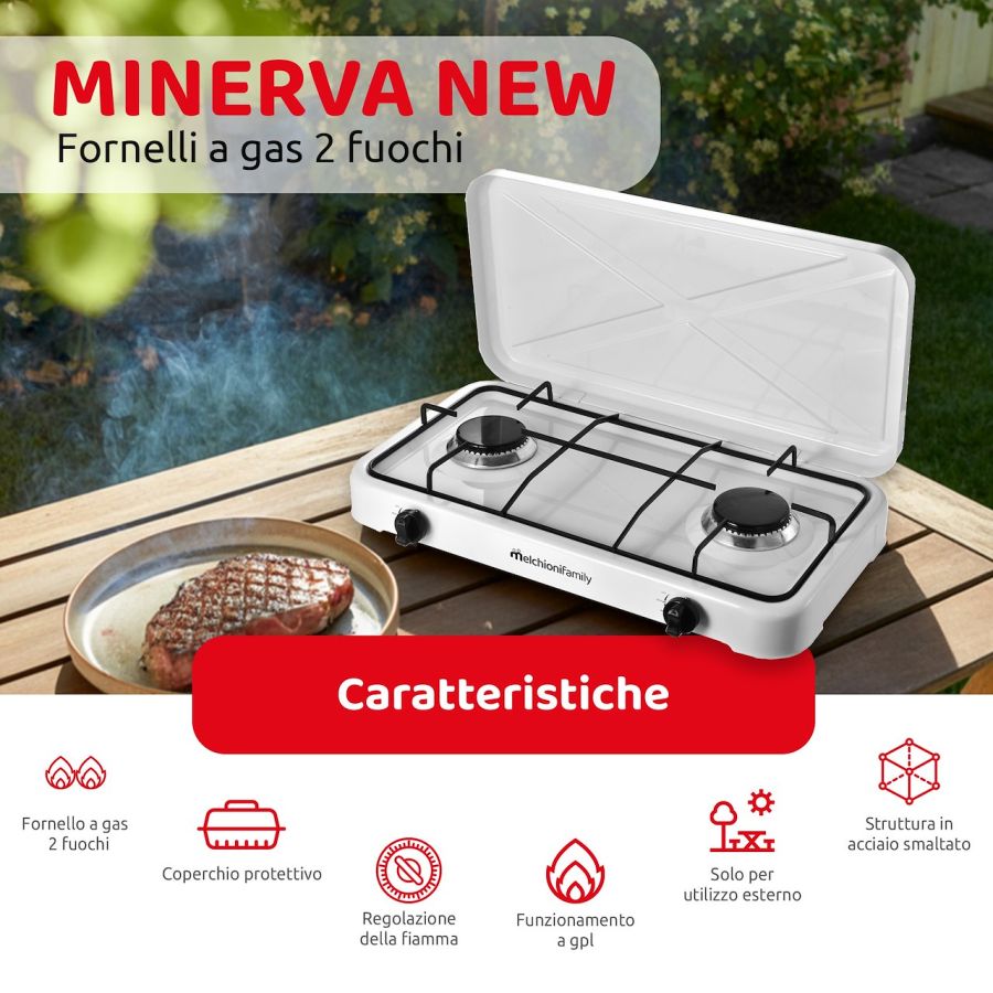 MELCHIONI FORNELLO MINERVA NEW 2 WHITEGAS - 2 FUOCHI - COPERCHIO - BIANCO