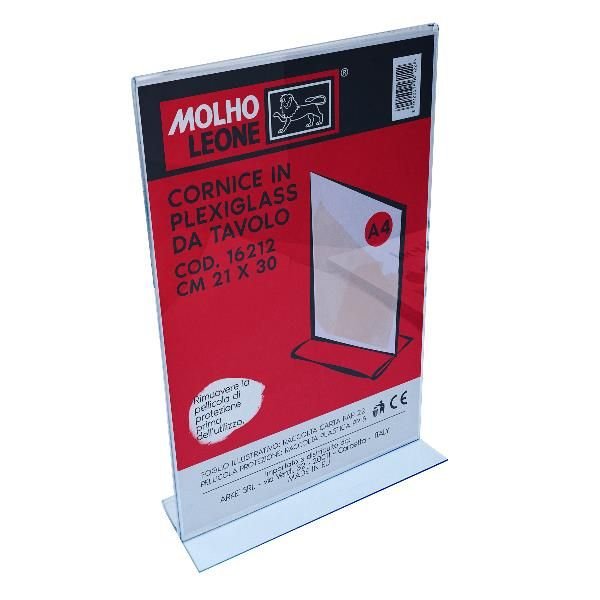 Portadepliant. Molho Leone Portadepliant a \"T\" - verticale 21x30 (A4) CORNICE PLEXIG. DA TAVOLO 16212M 16212MPortadepliant a "T" da tavolo in plexiglass