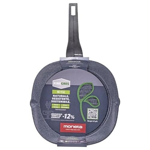 Bistecchiera 1 manico 28x28 cm serie Minerva finegres, NO PFAS, NO PTFE, NO PFOA, NO NICKEL, NO BISPHENOL A. adatta anche per i piani a induzione