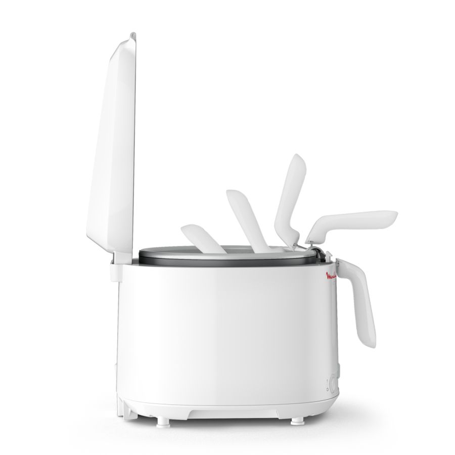Continua a cucinare per tutta la tua famiglia senza alcun problema di spazio! La friggitrice tradizionale Uno di Moulinex è la friggitrice compatta con una grande capacità per accontentare tutti! La sua capacità generosa di 1kg permette di cucinare per 4 persone, mentre le sue dimensioni compatte e il manico pieghevole la rendono ideale per ogni tipo di cucina e facile da riporre. Questa friggitrice è dotata di un coperchio trasparente per un monitoraggio più semplice, un'apertura atomatica del coperchio e un termostato regolabile (150°C a 190°C) per una maggior versatilità nei tuoi fritti.