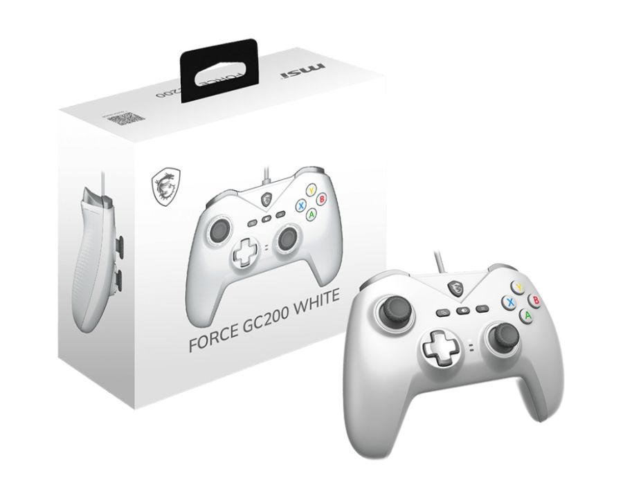 Joystick MSI FORCE GC200 WHITE S10-04G0120-EC4 FORCE-GC200WFORCE GC200 WHITE. Tipo di dispositivo: Gamepad, Piattaforme di gioco supportate: Android, PC, Tasti funzione per il controllo del gioco: Pulsante Indietro, D-pad, Pulsante Macro, Pulsante di accensione, Pulsante Avvio, Pulsante Turbo. Tecnologia di connessione: Cablato, Interfaccia dispositivo: USB. Colore del prodotto: Bianco, Lunghezza cavo: 2 m. Alimentazione: Cavo. Sistema operativo Windows supportato: Windows 10, Windows 7, Windows 8.1
