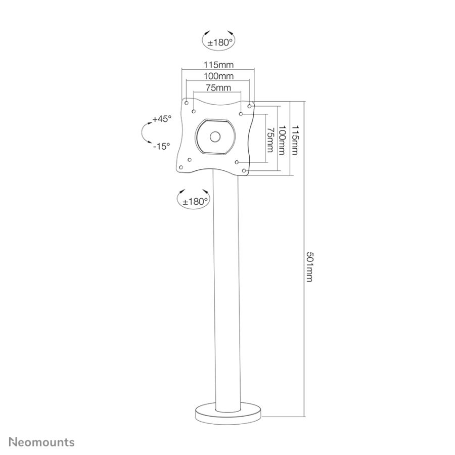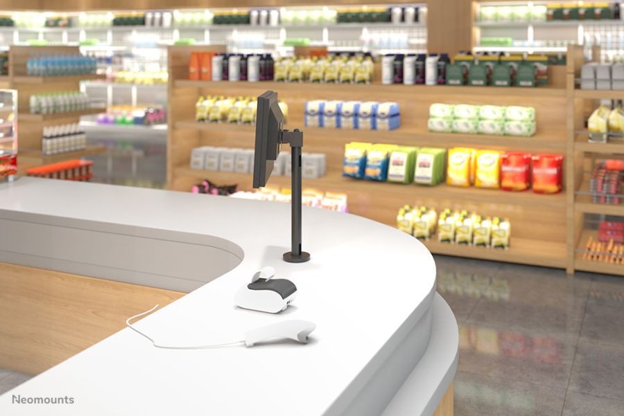 Staffa di Supporto. NewStar SUPPORTO DA SCRIVANIA PER SCHERMI FINO A 32IN NS-DPOS100BLACKQuesto braccio porta monitor Neomounts, modello NS-DPOS100BLACK consente di collegare un schermo LCD/LED/TFT su di una scrivania con la modalità di fissaggio su piano attraverso vite centrale o morsetto.