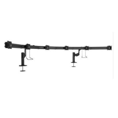 Staffa di Supporto. Nilox CHK4G610B SUPPORTO DA TAVOLO 6X1 100X100 CHK4G610BSupporto da tavolo 6 x 1 - bolt-down - barra per rotazione Specifica per applicazioni multimonitor complesse con 1 fila da 6 monitor, collegati insieme ed azionati contemporanemanete dalle pratiche maniglie direzionali; Particolarmente indicati per l'installazione in sale controllo, strutture sanitarie, uffici finanziari o in tutti quei contesti dove si desidera raggiungere la posizione ergonomica ottimale del display per creare uno spazio di lavoro più produttivo e confortevole. Soluzione ideale per Control Room e Sistemi di VideosorveglianzaSistema brevettato che conferisce una regolazione dell'inclinazione dello schermo di +75 ° , -10 ° col solo tocco delle dita , per un comfort di visione ottimale sia seduto o in piedi. Regolazione di inclinzione e orientamento di tutti i monitor installati con la pratica maniglia direzionale. Sistema rapido di aggancio/ sgancio del monitor per semplificare le eventuali operazioni di manutenzione.
