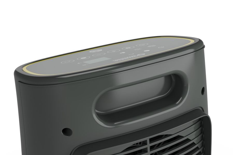 Termoventilatore Caldo Rock-DT colore nero, controllo digitale, potenza max 2000W, protezione IP21, 2 livelli di potenza, solo ventilazione, termostato ambiente, timer integrato, base oscillante, misure H290xL217xP155.