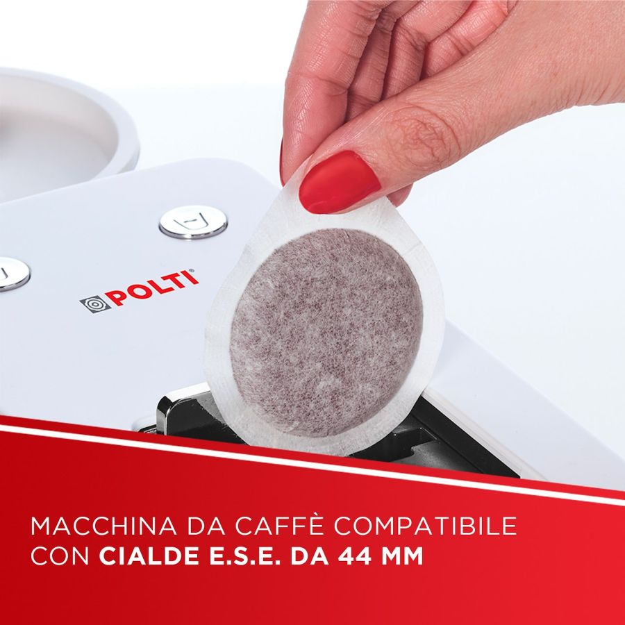 Descrizione POLTI - Macchina da caffè Coffea S15W + 54 CIALDE - Bianco CAFFE' - ESPRESSO PORZIONATO APERTO CAFFE' - ESPRESSO PORZIONATO APERTO