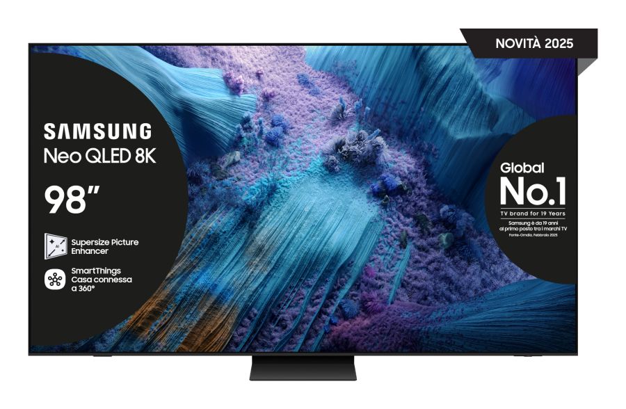 Tecnologie Samsung (AV/TV) 8K AI Upscaling, AI Auto Game Mode, AI Energy Mode, AI Motion Enhancer Pro, Active Voice Amplifier Pro, Adaptive Sound Pro, Art Store, Auto HDR Remastering, Built-in SmartThings Hub, EyeComfort Mode, Generative Wallpaper, Infinity One Design, Karaoke Mode, Knox Vault, Neo Quantum HDR 8K+, Object Tracking Sound Pro, One Connect Box, Q-Symphony, Quantum Matrix Technology Pro, Samsung Health, Samsung TV Plus, Slim Fit Wall-Mount Compatible, Smart Calibration, Ultra Viewing Angle