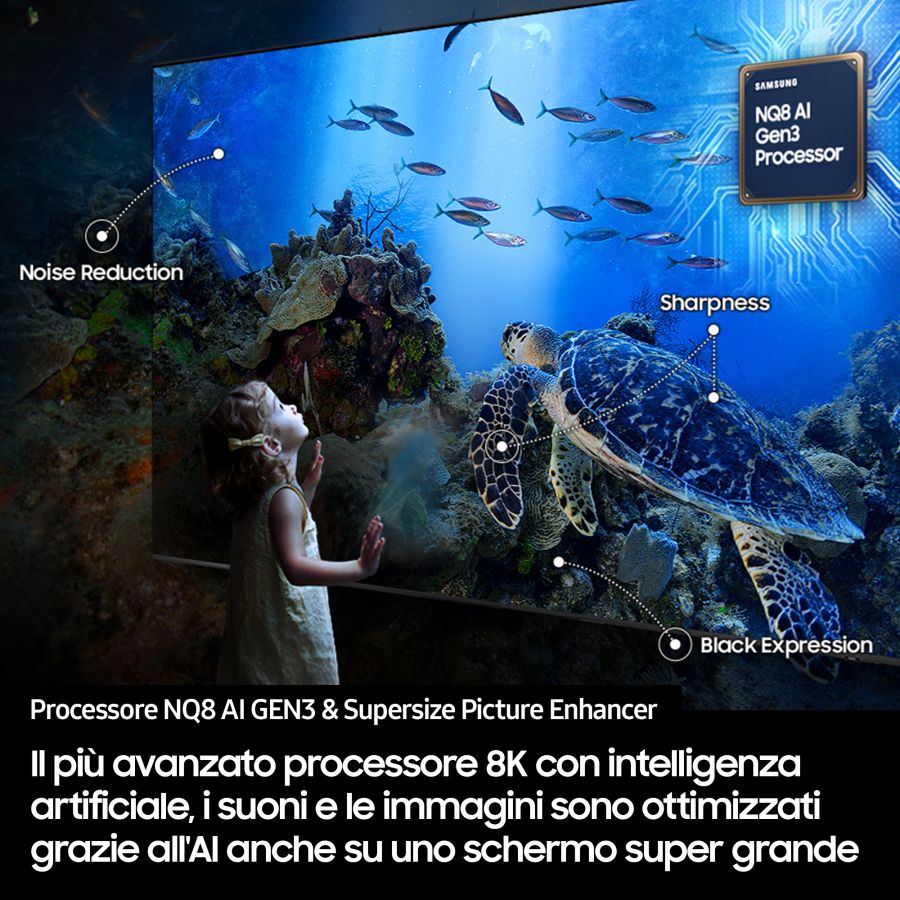 Qualità senza compromessi grazie al processore AI Samsung più all'avanguardia di sempre. Grazie al supporto di 768 reti neurali AI, riproduce suoni e immagini con una qualità senza precedenti. Questo televisore 8K è in grado di offrire prestazioni semplicemente straordinarie con qualsiasi contenuto.