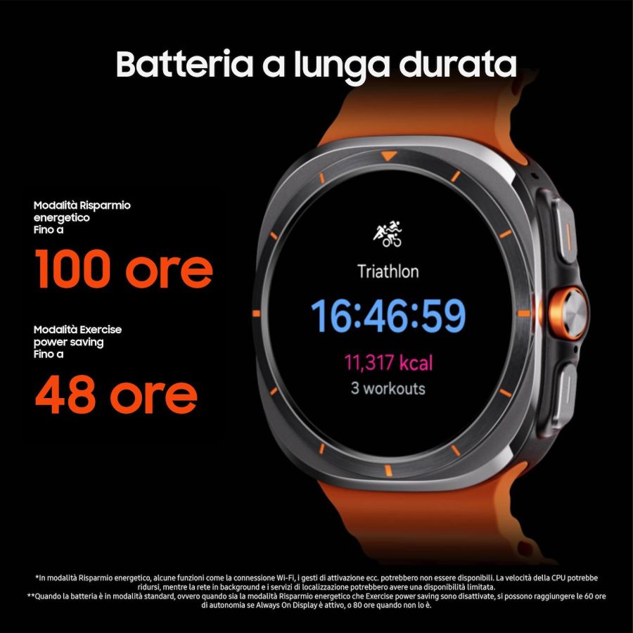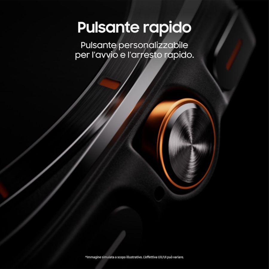 Utilities installate Always On Display Bixby / Controlli vocali / Inserimento vocale / Registratore vocale Blocco in acqua Bussola / Scocca in titanio Certificazione in acqua fino a 5 ATM / IP68 / MIL-STD-810H Connessione remota Galaxy AI (sonno / sport / punteggio energetico / risposte intelligenti) Galleria / Lettore musicale / Controller Buds / Controller Fotocamera / Controller Multimediale Modalità Teatro / Modalità Riposo / Non disturbare Orologio / Cronometro / Timer / Sveglia / Fusi orari Play Store / Maps / Messaggi Android / Samsung Global Goals Promemoria / Calendario / Meteo / Calcolatrice Rilevamento cadute / Invia richieste SOS (Combinazione tasti / Rilevamento caduta) Risparmio energetico / Rubrica / Telefono / Messaggi / Microsoft Outlook Samsung Wallet / Samsung Health / Samsung Health Monitor Sensore di frequenza cardiaca / Stress (Rilevamento: Continuo, Ogni 10 minuti da fermo, Manuale) Sensore per composizione corporea / ECG / Pressione arteriosa / Ossigenazione nel sangue / Temperatura Trova telefono / Trova orologio personale Widget (Batteria, Controller Buds, Controller multimediale, Maps, Meteo, Orologio, Outlook, Programma, Rubrica, Samsung Health, SmartThings)