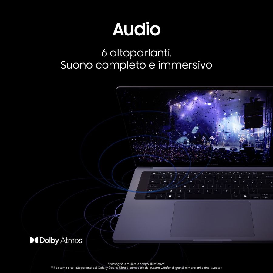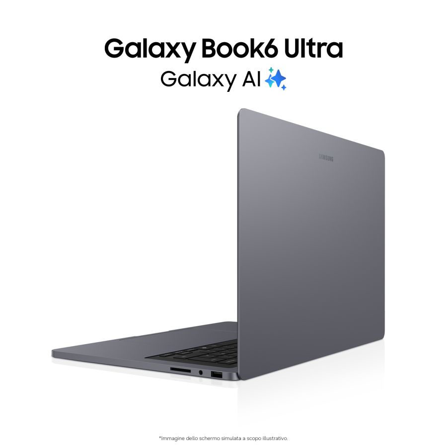 Notebook Samsung Notebook Samsung NP960UJH XG6IT GALAXY AI BOOK6 ULTRA Gray 12BB0993867Galaxy Book6 Ultra offre prestazioni elevate, grande autonomia e un?esperienza d?uso di alto livello. Grazie alla GPU NVIDIA® GeForce RTX? 5060 per laptop, è progettato per gestire attività creative e professionali complesse come rendering 3D, flussi di lavoro basati sull?intelligenza artificiale e visualizzazione 3D in tempo reale. Il processore Intel® Core? Ultra Serie 3, supportato da una NPU da 50 TOPS, assicura velocità ed efficienza elevate. Nonostante un design più sottile di 1,1 mm, il sistema di raffreddamento ottimizzato garantisce prestazioni stabili e una dissipazione del calore migliorata del 7%.