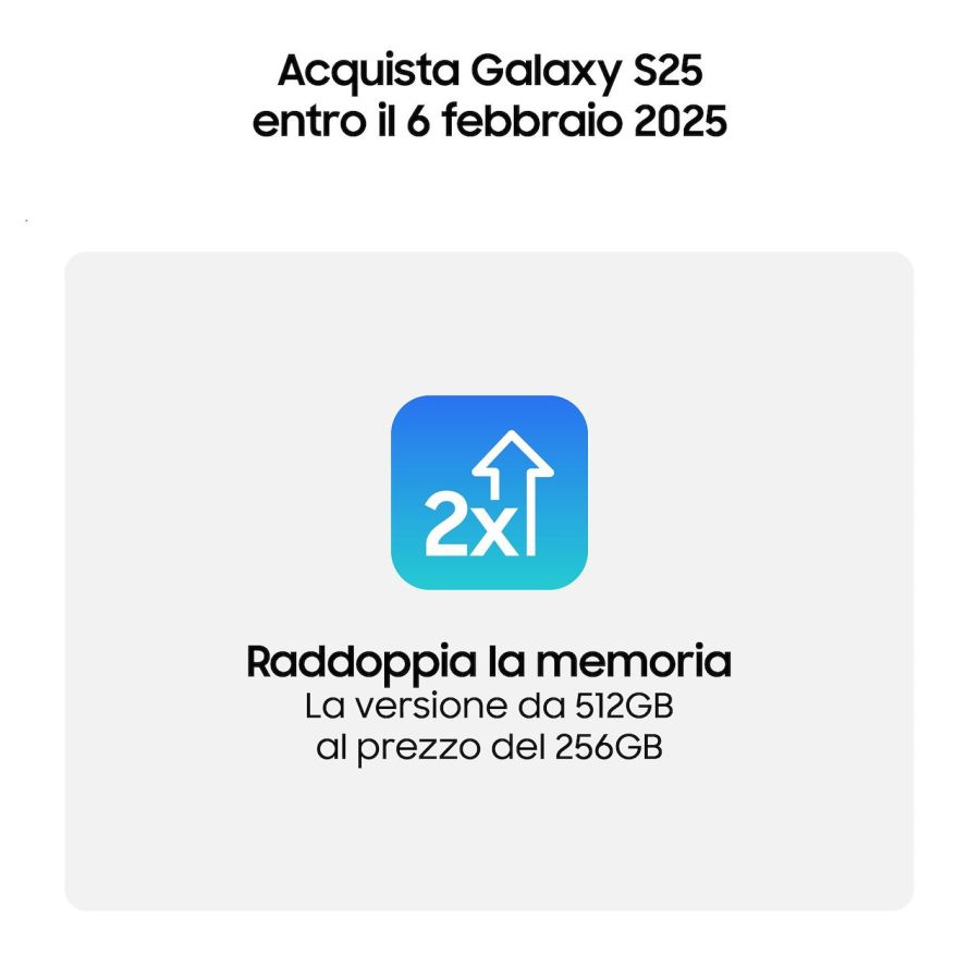 Archivia di tutto e di più con 12 GB di memoria e fino a 128 GB, 256 GB o 512 GB di spazio di archiviazione sul Galaxy S25 oppure scegli tra 256 GB o 512 GB di spazio disponibili sul Galaxy S25+.