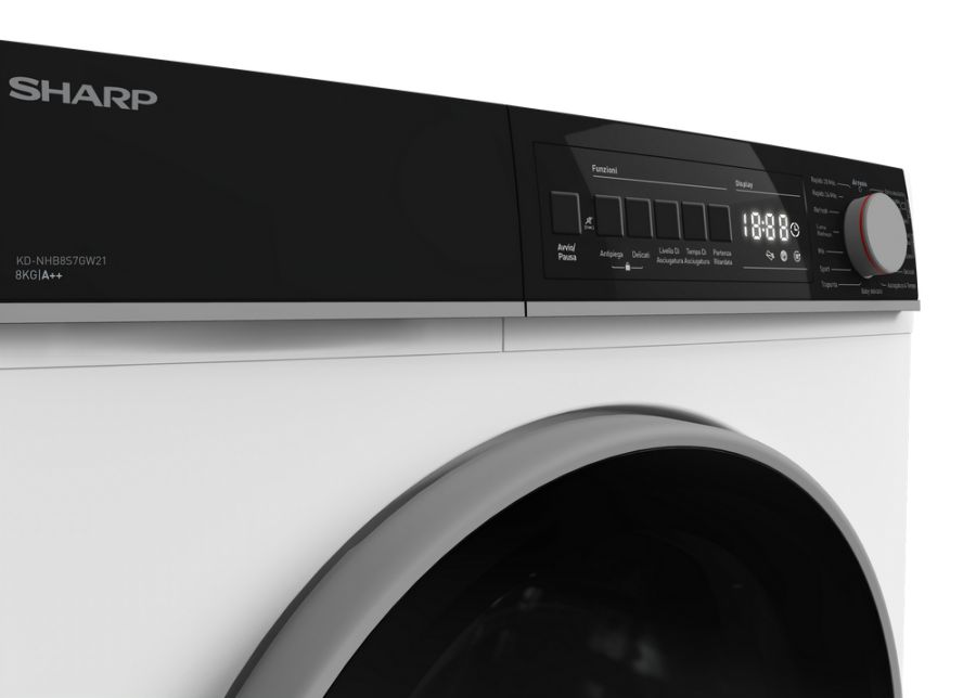 Asciugatrici Sharp Asciugatrice KD-NHB9S7GW21 KD-NHB9S7GW21KD-NHB9S7GW2-IT. Posizionamento dell'apparecchio: Libera installazione, Tipo di carica: Caricamento frontale, Sistema di asciugatura: Pompa di calore. Capacità cestello: 9 kg, Condensation efficiency class (old): B, Classe di efficienza della condensazione: D. Classe efficienza energetica: E, Consumo energetico annuo: 1,41 kWh, Fonte di calore: Elettrico. Profondità: 609 mm, Larghezza: 597 mm, Altezza: 845 mm. Larghezza imballo: 641 mm, Profondità imballo: 638 mm, Altezza imballo: 881 mm