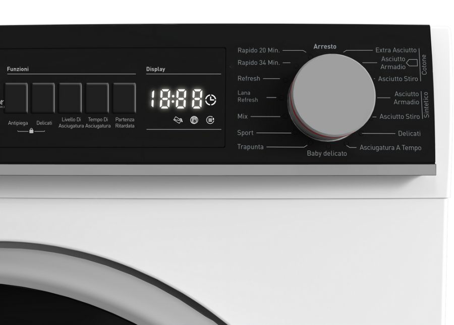 Asciugatrice a condensazione in pompa di calore capacita di carico massima 9 Kg (panni asciutti), 15 programmi, display led, partenza differita
