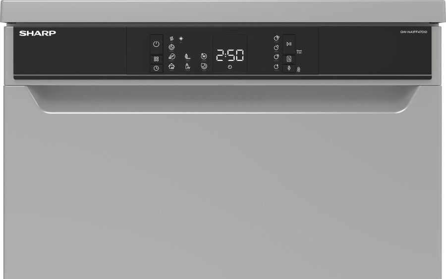 Lavastoviglie Sharp QW-NA1FF47DS1, libera installazione, colore argento, 14 coperti, funzioni speciali Partenza differita / Filtro antibatterico.