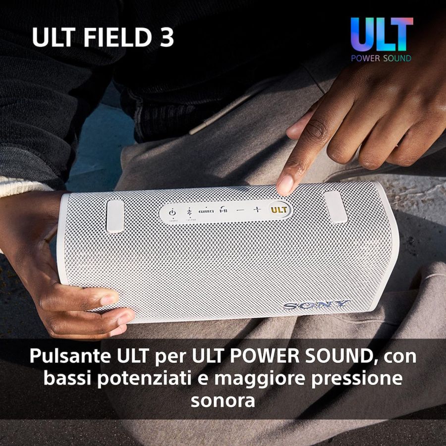 Casse acustiche per MP3 Sony SRSULT30W.CE7 ECO160795SRSULT30W. Diametro del tweeter: 2 cm. Potenza in uscita (RMS): 27 W, Range di frequenza: 20 - 20000 Hz. Tecnologia di connessione: Wireless, Profili Bluetooth: A2DP, AAC, AVRCP, HFP, HSP, SBC, SPP. Tipo di prodotto: Altoparlante portatile stereo, Colore del prodotto: Bianco, Codice di protezione internazionale (IP): IP66, IP67. Utilizzo raccomandato: Universale