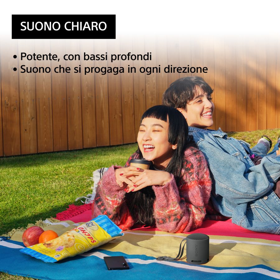 Casse acustiche per MP3 Sony SRSXB100B SPEAKER SRSXB100 BK DIDIFSONSRSXB100BSRS-XB100 - Speaker Wireless Bluetooth, portatile, leggero, compatto, da esterno, da viaggio, resistente IP67 impermeabile e antipolvere, batteria da 16 ore, cinturino versatile, chiamate in vivavoce - Nero. Tecnologia di connessione: Wireless, Profili Bluetooth: A2DP, AAC, AVRCP, HFP, SBC, Connettore USB: USB tipo-C. Tipo di prodotto: Altoparlante portatile mono, Colore del prodotto: Nero, Design del prodotto: Cilindro. Utilizzo raccomandato: Universale, Formati audio supportati: AAC, SBC. Tipo batteria: Batteria integrata, Potenza di ricarica richiesta (min): 1,6 W, Potenza di ricarica richiesta (max): 2,5 W. Peso: 274 g, Larghezza: 76 mm, Profondità: 95 mm