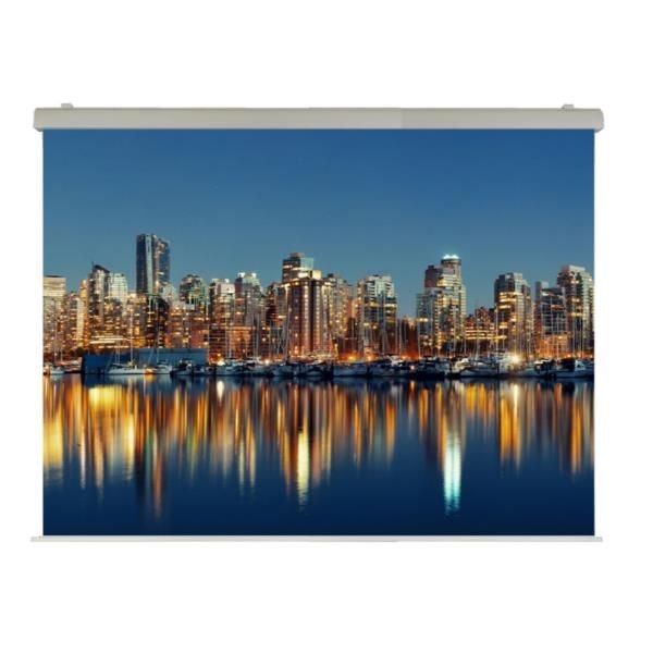 Monta una tela con Certificazione M1 del tipo Ignifugo ad Alta Riflettenza ed è ideale per sale riunioni importanti, meeting, sale congressi, grandi spazi ed eventi in fiere.