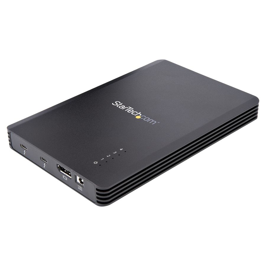 L'enclosure dispone di una porta di uscita DisplayPort, che consente di collegare un monitor DisplayPort al computer attraverso l'enclosure Thunderbolt 3, con risoluzioni fino a 4K 60Hz. L'alloggiamento dispone anche di una porta Thunderbolt 3 a valle per concatenare un ulteriore dispositivo TB3 o collegare un ulteriore display compatibile TB3 (con risoluzioni fino a 5K 60Hz)