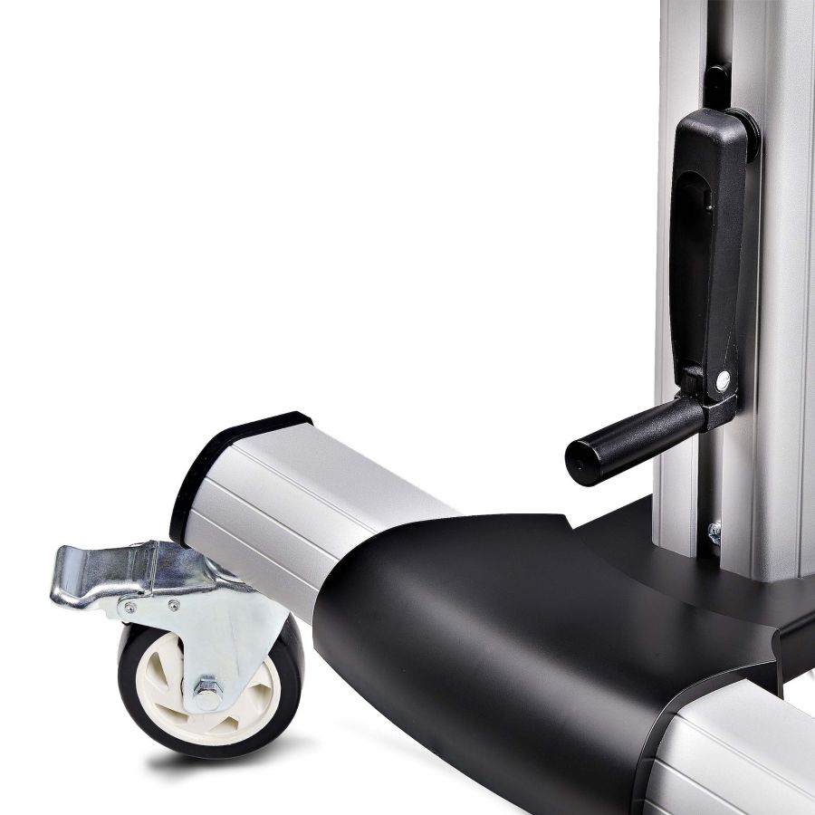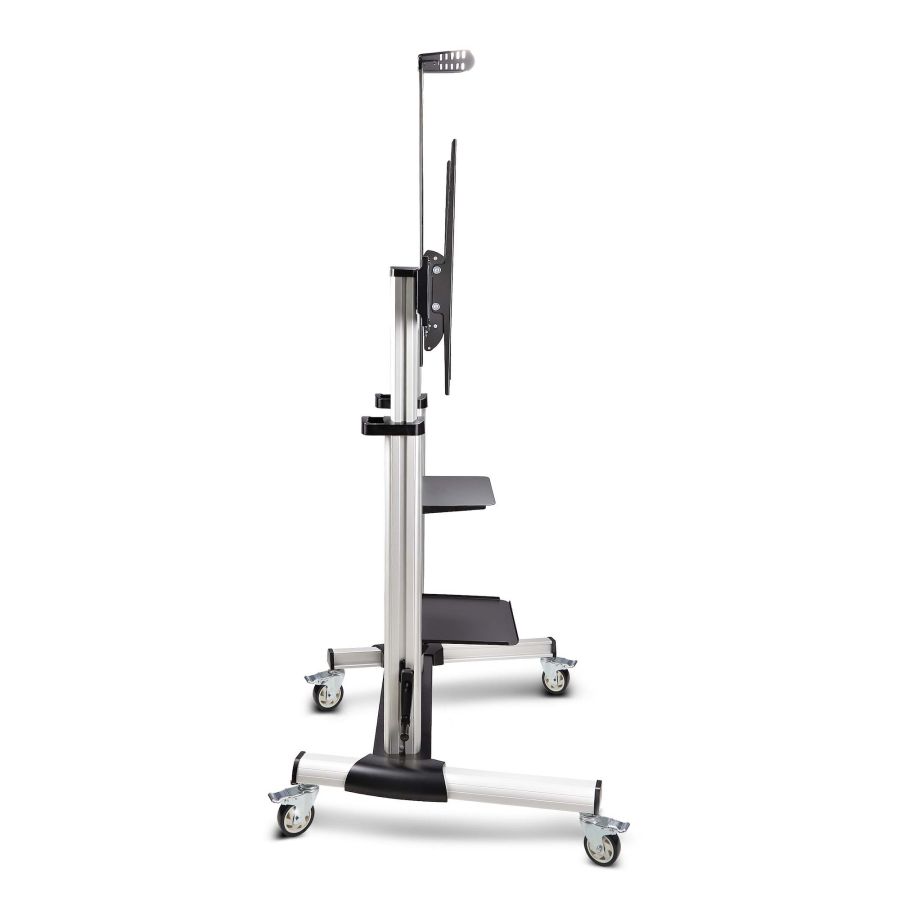 La struttura in alluminio e acciaio del supporto TV per impieghi gravosi lo rende ideale per l'uso commerciale in ambienti con più utenti e frequenti spostamenti tra le aree. Le maniglie sul retro delle colonne e le rotelle da 10cm consentono un trasporto agevole in diversi luoghi. Una volta posizionate, tutte le ruote possono essere bloccate. Dimensioni della base 1138mmx700mm.