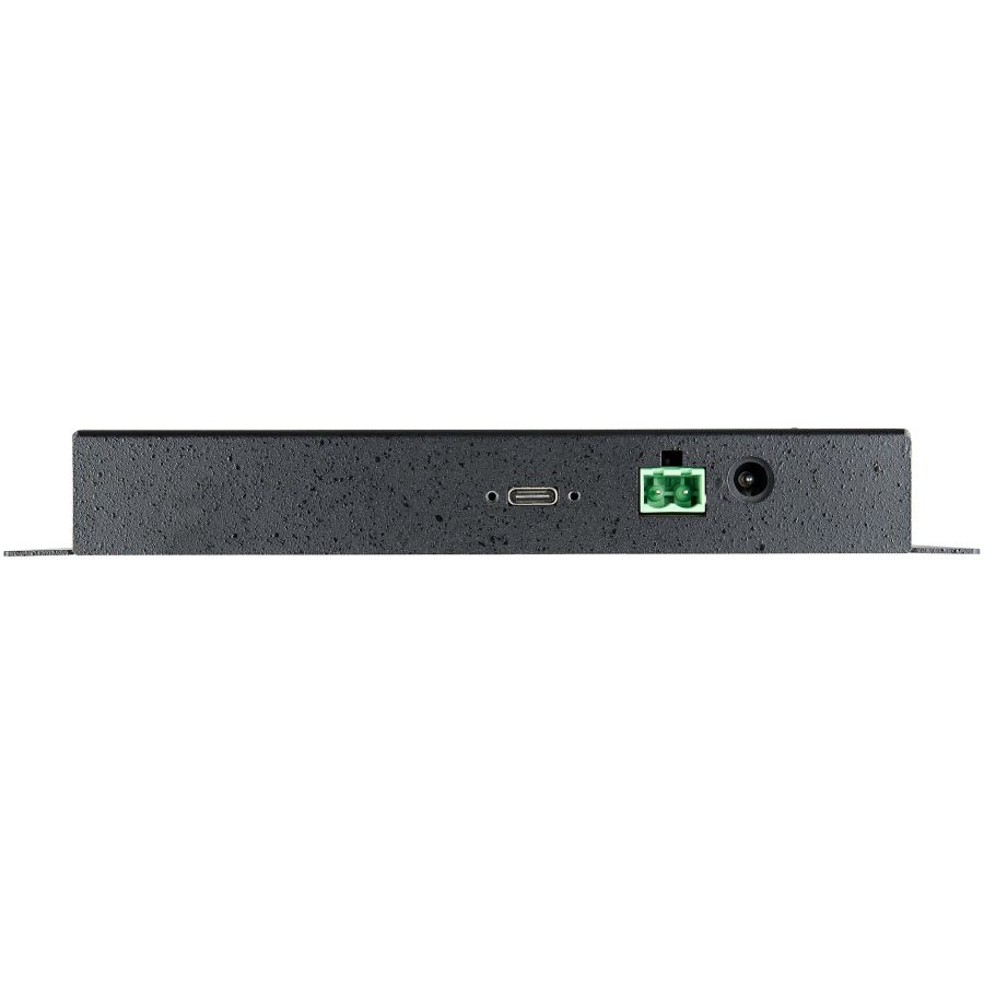 Questo hub USB è dotato di un robusto box esterno in metallo con alette di montaggio integrate che ne consentono l'installazione su qualsiasi parete o superficie. L'hub è dotato di protezione dalle scariche elettrostatiche (15 kV in aria e 8 kV a contatto) e protezione dalle sovratensioni da 350 W. Ogni porta dell'hub dispone di un fermo a vite, per evitare la possibilità di disconnessione accidentale del cavo, e sono inclusi in dotazione un cavo host USB-C e un cavo host USB-A da 1 m con vite di bloccaggio.