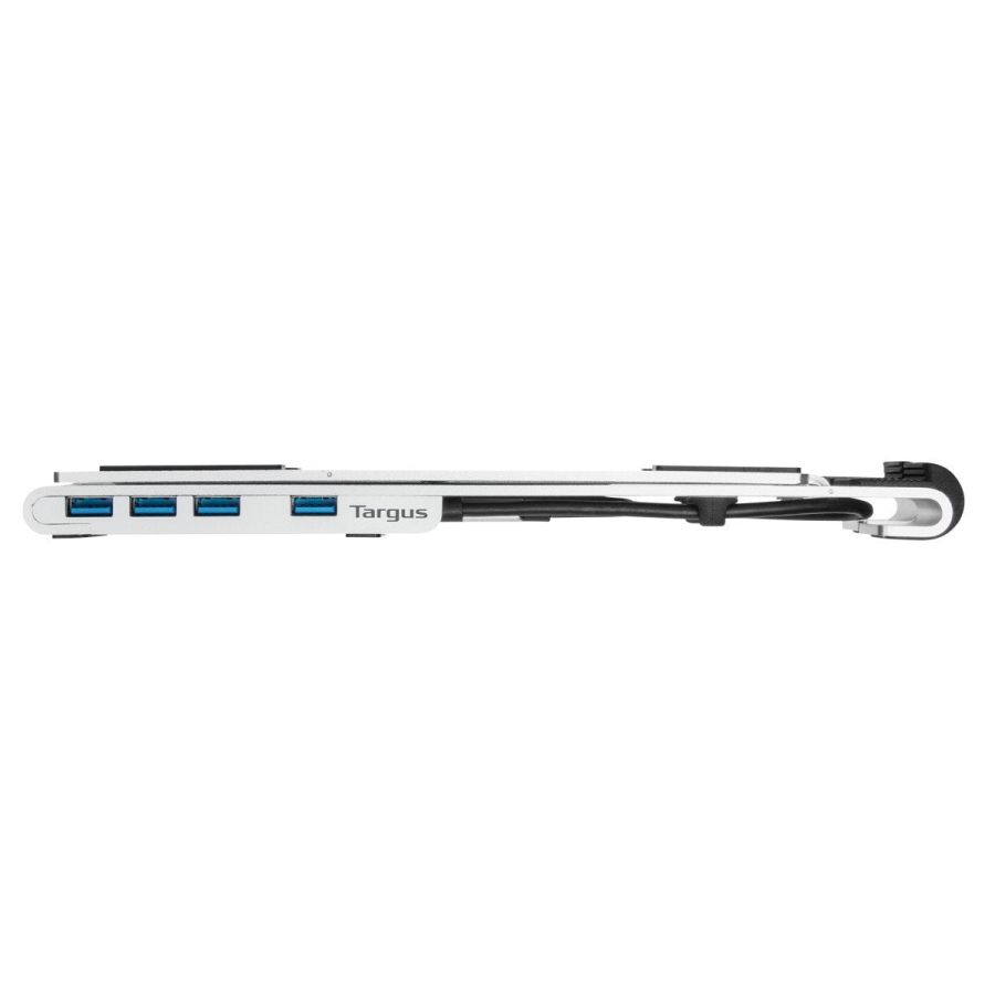 Supporto per laptop Targus PORTABLE INTEGRATED HUB (USB-A) AWU100205GL AWU100205GLAWU100205GL. Tipo di prodotto: Supporto per computer portatile, Colore del prodotto: Argento, Materiali: Alluminio. Interfaccia host: USB 3.2 Gen 1 (3.1 Gen 1) Type-C, Velocità di trasferimento dati USB: 5000 Mbit/s, Fornitura di alimentazione USB fino a: 100 W. Larghezza: 62 mm, Profondità: 260 mm, Altezza: 27 mm. Cavi inclusi: USB tipo-C