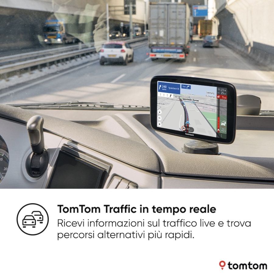 Le informazioni sul traffico in tempo reale sono un ottimo modo per essere sempre informati su ingorghi di traffico, strade chiude e incidenti, ma TomTom Traffic fa molto di più. Offre percorsi alternativi più rapidi quando rileva traffico intenso sul percorso, il che vuol dire meno tempo al volante, meno carburante utilizzato e, alla fine, minore impatto ambientale.