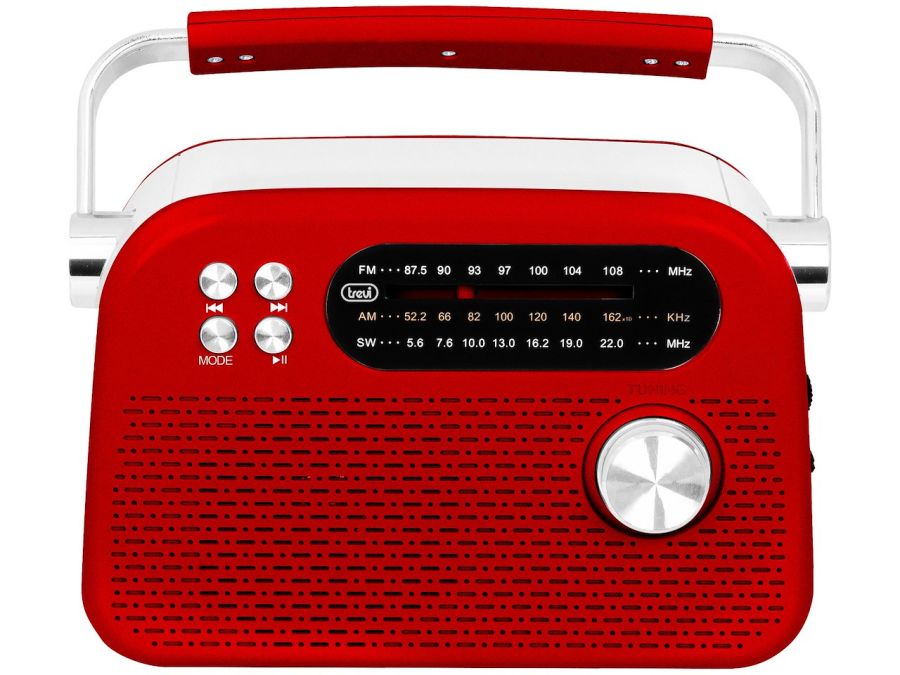 Radio Trevi RDA 70 BR RADIOROSSA 12BB0979935Trevi RDA 70 BR è una radio wireless portatile compatta e versatile, progettata per offrirti un?esperienza d'ascolto completa, unendo la tradizione della radiofonia con le moderne funzionalità digitali. È l?ideale per chi ama ascoltare musica o notizie ovunque si trovi, unendo praticità, design e un?ampia gamma di opzioni di riproduzione.
