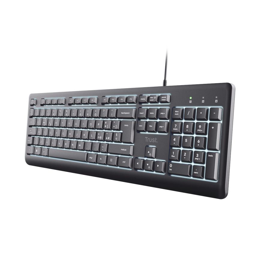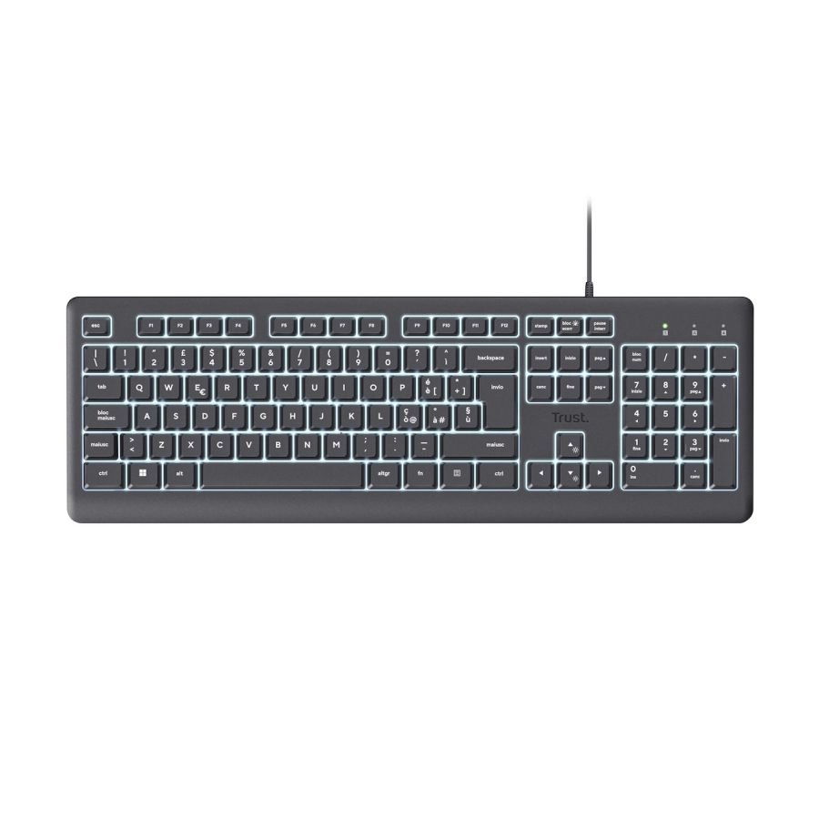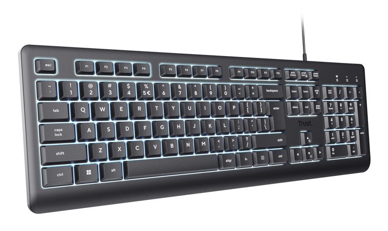 Tastiere con Cavo Trust Tastiera computer Trust 25820 PRIMO Illuminated Black 25820Primo Beleuchtete. Fattore di forma tastiera: Full-size (100%). Stile tastiera: Dritto. Tecnologia di connessione: Cablato, Interfaccia dispositivo: USB, Struttura tastiera: QWERTY, Numero pulsanti tastiera: 104. Lunghezza cavo: 1,8 m. Utilizzo raccomandato: Casa/ufficio. Colore del prodotto: Nero