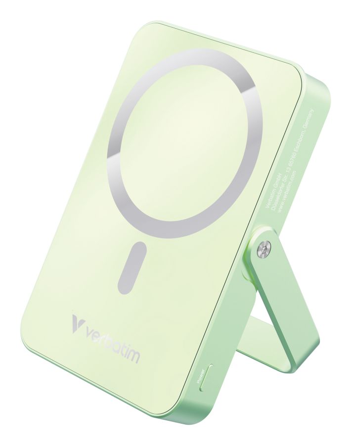 Power Bank Verbatim POWER BANK 10000MAH MAGNETICO GREEN con Supporto MAG SAFE 32259 32259Charge 'n' Go Magnetic Wireless. Capacità della batteria: 10000 mAh, Tecnologia batteria: Polimeri di litio (LiPo). Quantità di porte USB Tipo C: 1. Carica wireless. Potenza di uscita totale: 35 W, Corrente d'uscita: 3 A. Colore del prodotto: Verde