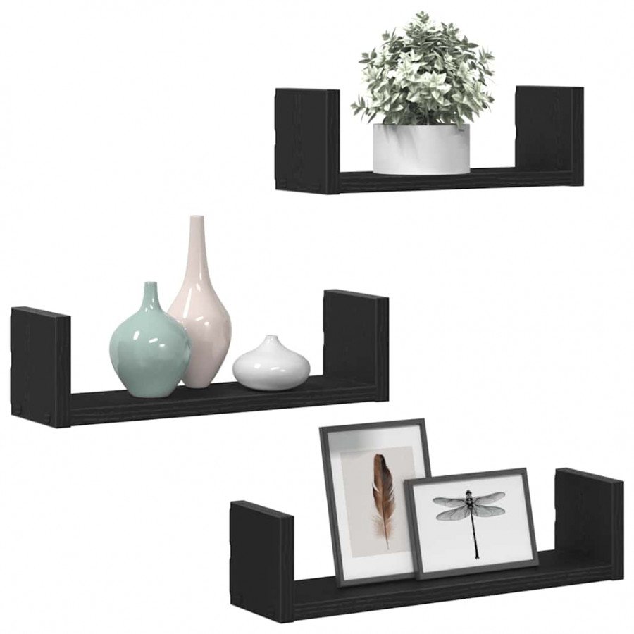 Mensole Parete 3pz Rovere Nero in Legno Multistrato