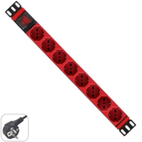 MULTIPRESA 19 POLLICI 1U CON 8 PRESE UNIVERSALI CON SPINE ROSSE