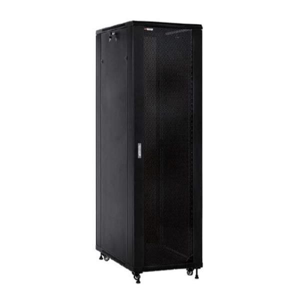 La porta anteriore e posteriore in acciaio forato, la struttura portante in acciaio da 2 mm, i fianchi laterali asportabili con serratura, le 4 ruote e i 4 piedi di livellamento fanno di questa serie la soluzione più completa per una installazione di alto livello.