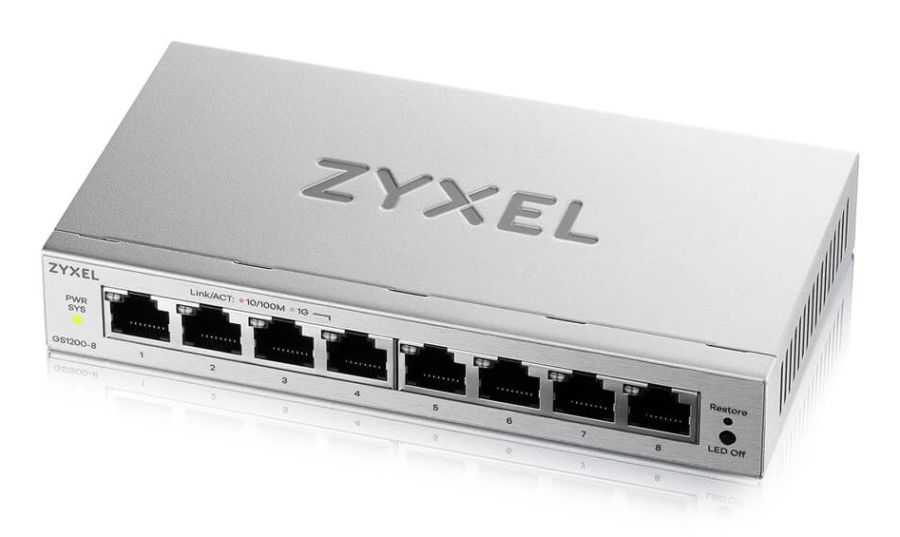 Switch Stand-Alone Zyxel SWITCH 8P LAN GIGABIT GS1200-8V3-EU0101F 8P Gigabit Easy Management per VLAN QoS GS12008V3EU011FGS1200-8V3. Tipo interruttore: Gestito, Livello del commutatore: L2. Tipo di porte RJ-45: Gigabit Ethernet (10/100/1000), Quantità di porte RJ-45: 8. Full duplex. Dimensioni tavola MAC: 4000 voci, Capacità di commutazione: 16 Gbit/s. Standard di rete: IEEE 802.1Q, IEEE 802.1p, IEEE 802.3, IEEE 802.3ab, IEEE 802.3ad, IEEE 802.3az, IEEE 802.3u, IEEE.... Connettore di alimentazione: Jack DC-ingresso. Fattore di forma: Desktop
